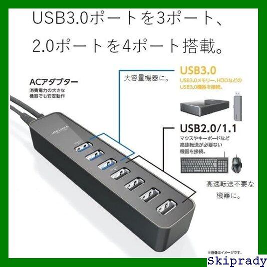 【本日限定価格】 エレコム U3H-T706SBK ブラック Switch対応 Nintendo ノートPC Chromebook他 / Pro Surface / MacBook マグネット付 セルフ/バス両対応 150cm ACアダプタ付 7ポート ハブ USB3.0 25 | Skiprady MENS