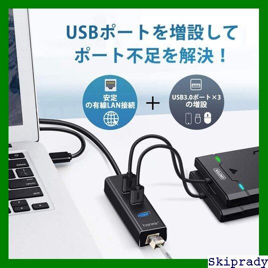 Hanmir USB3.0ハブ 4ポートアダプター 有線LAN RJ45 変換アダプタ 5Gbps高速USB拡張 高速伝送 USB3.0ポート×3+ネットワークコンバーター Hub/MAC Windows/OS Linuxなどに対応可能 小型 軽量 百メガビット 35