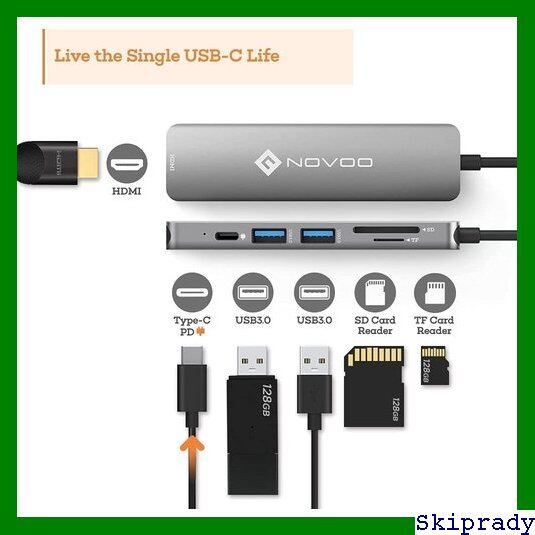 NOVOO 6-in-1 USB-C PD HDMI ハブ データ転送、4K 30Hz HDMI接続に対応しPD対応によるフルスピード充電が可能なUSB-Cハブです。 【製品仕様】 ポート:100W PD充電ポート*1、4K HDMI ポート*1、USB3.0ポート*2、 SDカードスロット*1、Micro SD/TF カードスロット*1 材質:アルミニウム合金 サイズ:約112.2*29.8*11.4 mm タイプCケーブル長:20cm 重さ:54g 証明書:CE、FCC、RoHS 6in1 USB C ハブ これは、2つのUSB 3.0ポートを備えた5ポートハブであり、4K HDMIポート、SDおよびTF/Micro SDカードリーダー用のスロットがあり、どこにいてもデータ、映画、写真やビデオに即座にアクセスできます。 高画質出力 ミラーモード HDMIは4Kx2K30Hz解像度をサポートし、超高精細映像と音声を一本で実現できます。PCやタブレット、スマホの映像信号を変換して、テレビやプロジェクター、モニターで大画面で精細に表示されます。 高画質出力 拡張モード 4k 30Hz HDMI ビデオ出力 【持ち運びに便利】 54グラム重量で、手のひらサイズで持ち運びに最適。持ち運びに便利なだけでなく、カバンの中で一緒に置いた他のものの傷を防ぐことができます。 【100W Power Delivery対応】 ハブとして使用しながらもフルスピード充電が可能です。お使いのMacBookに100Wまでの高出力充電をしながら、その他のUSBポートやHDMI接続を用いた作業も可能です。 【USB3.0 高速データ拡張】 USB3.0対応の5Gbps転送速度をサポート、高解像度の写真やHD動画はPCやノートパソコンに数秒で転送できます。 もっと読む 【幅広い互換性】 MacBook Pro/MacBook Air 2020/2019/2018,iPad Pro 2020/2019, Surface Go/Book 2,Samsung Galaxy S20/S10などのUSB-Cポート搭載のデバイスに最適です。 【安全・安心】 CE、FCC、RoHS認証取得で安心・安全。 【放熱性を持ちがいい】 アルミ合金素材を採用して、高級感が溢れています。断熱材持つアルミニウム仕上げていて、耐振動・耐衝撃性にも優れています。 もっと読む 対応機種(不完全リスト)ラップトップ: Mac MacBook Pro 2019 2018 2017 2016, MacBook Air 2020 2019 2018, MacBook 2017 2016 2015, iMac Pro, iMac (2017以降), Mac Mini 2018 2020,iPad Pro 2018 2020 Dell XPS 2017 / XPS 15 (9550, 9560) / XPS 13 (9350, 9360, 9370) / XPS 12 (9250),Dell Latitude, Dell Precision 5510 Microsoft Sur 2, Surface Go, ChromeBook Pixel HP Spectre X2, HP Spectre x360, HP ENVY 13 (2017), EliteBookFolio G1 Lenovo Yoga 720 / 900 / 910 /920, Yoga 5 Pro, Lenovo Thinkpad T470/480 ,Y520, Y530, Y7000,Lenovo ThinkPad A485, A285,Lenovo ThinkPad E485, E585 Acer Aspire Switch 12S / R13 / V15 Nitro HUAWEI MateBook X/ X Pro/ X Pro 2019/ E/ E2019/ 13/ 14 Alienware 13 / 15 / 17 ※ご注意 お使い機種がリストされていない場合、または製品に関する他の質問があれば、お気楽にお問い合わせください。弊社では24時間以内に返信します。