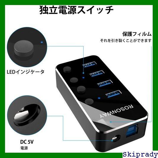 【本日限定価格】 ROSONWAY ACアダプタ付き 5V/2A ハブ独立スイッチ付 3.0 USB 高速転送 5Gbps アルミ製 セルフパワーとバスパワー Hub 4ポートUSB 電源付き 3.0 ハブ USB 102 | Skiprady MENS