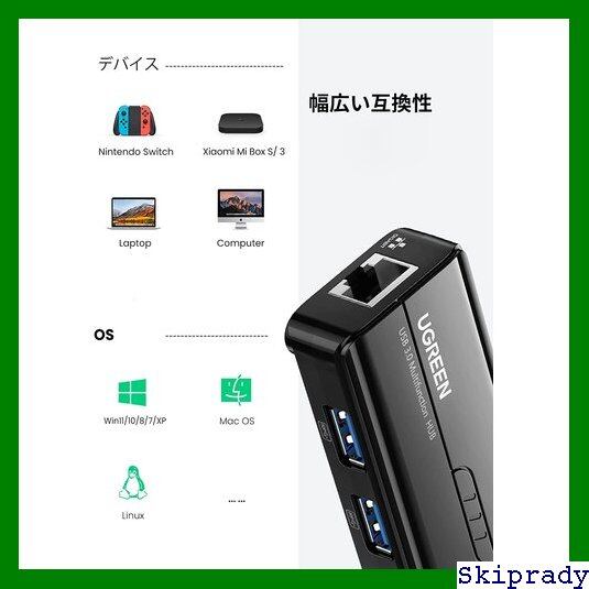 UGREEN USB LAN 変換 USBハブ 3ポート拡張 RJ45 1000/100/10Mbps ギガビット 高速 イーサネット 有線LANアダプター Surface Proとの互換性あり 158