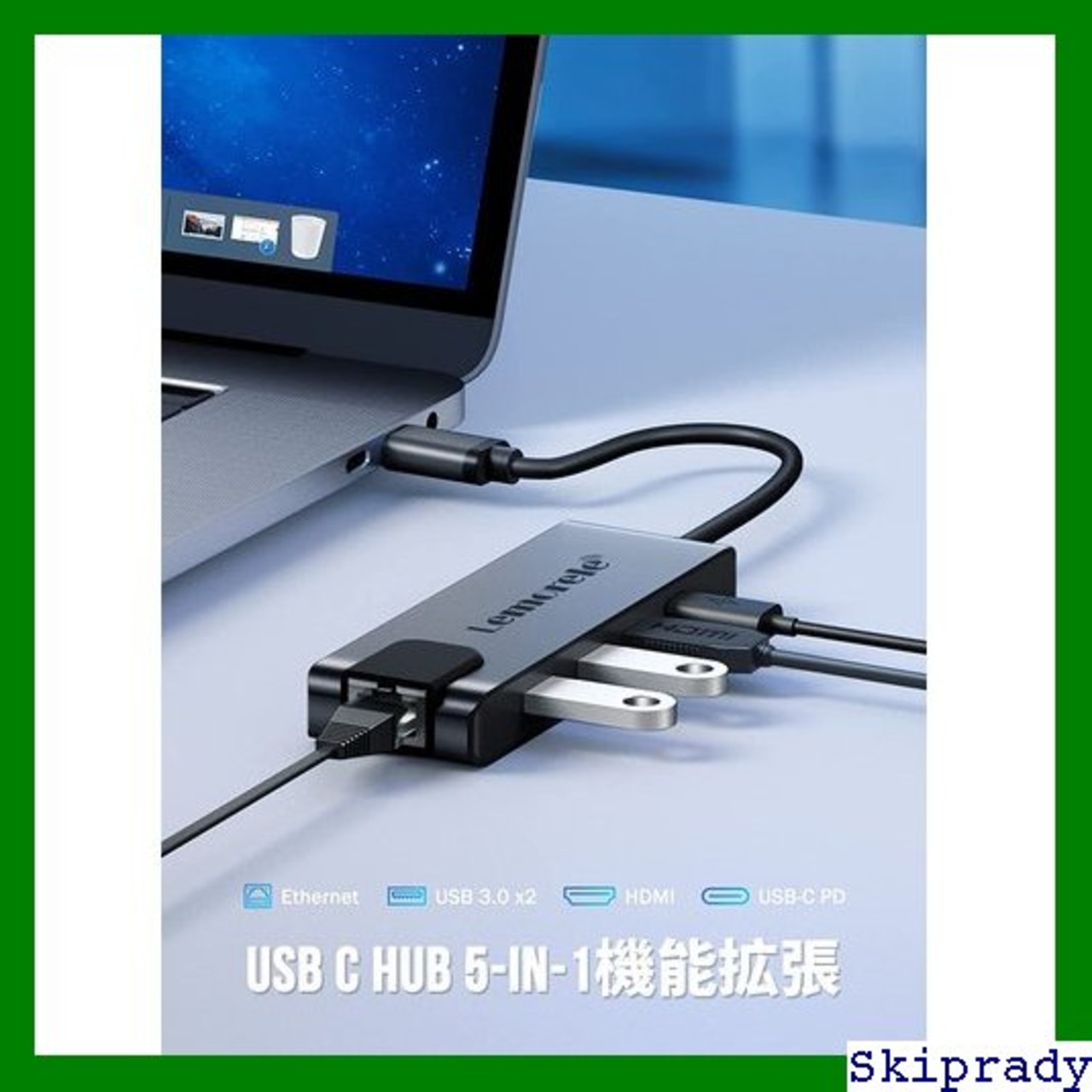 USB C ハブ 5 IN 1 Lemorele USB C PD イーサネット ハブ PD 有線LAN HDMI 変換 ハブ USB3.0*2 4K30Hz HDMI4K解像度 高速データ伝送 100WPD充電 RJ45 MacBook Pro 2019 iPad Pro 2020 XPS13ChromeBookなどのUSBCマルチポートアダプター 237