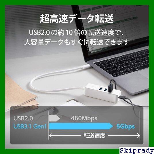 【本日限定価格】 エレコム U3HC-T431P5WH ホワイト マグネット付 ケーブル30cm 60W対応Type-C×1ポート PD USB 3.0×3ポート USB-A Type-C USBハブ 285 | Skiprady MENS