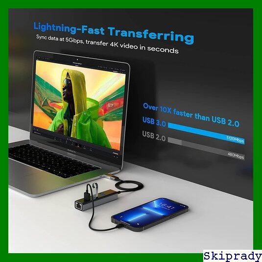 「超高速データ転送」USB 3.0ポートは5 Gbpsまでの超高速データ転送をサポートする-USB 2.0(480 Mbps)より10倍速く、数秒以内にハイビジョン映画や大量のファイルを転送することができる。注意:このUSB 3.0ハブの最適な性能を確保するために、充電の目的で使用しないでください。データ転送のみに使用してください。