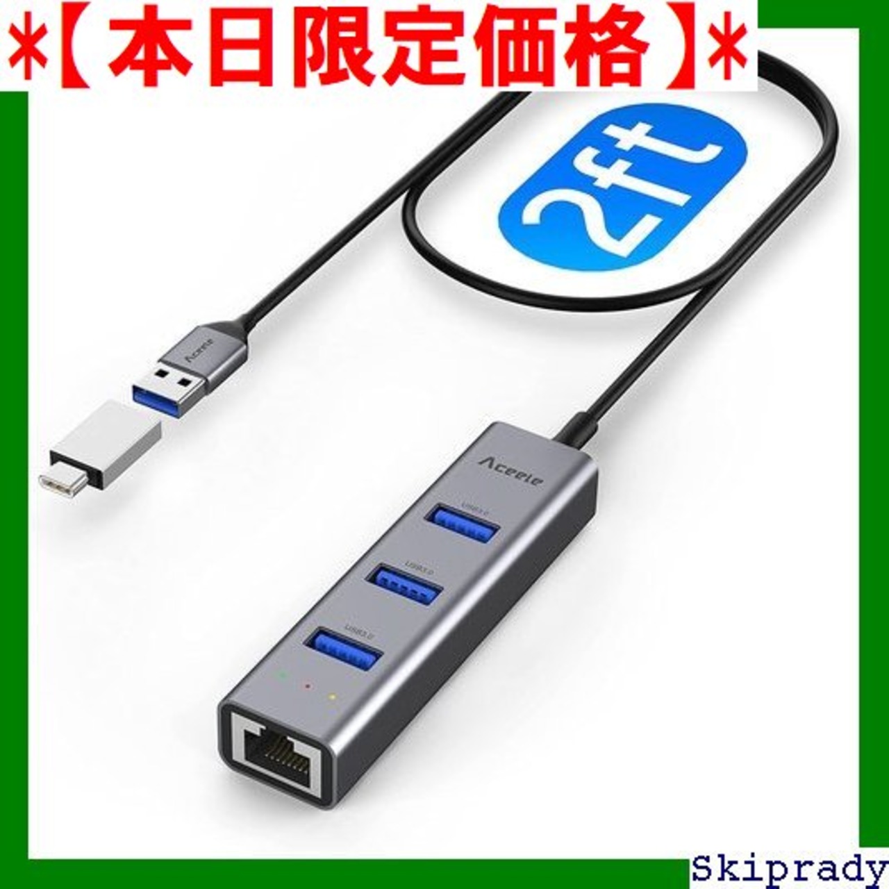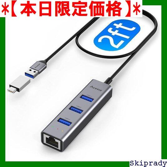 【本日限定価格】 Aceele 会社/在宅勤務/出張対応アルミニウム合金 Linuxなど対応 / Mac / Windows 5Gbps10/100/1000Mbps超高速 ポート LAN ポート/ 3.0 usb 3* 変換アダプタ RJ45 C変換アダプター Type To 3.0 USB LANアダプター usb 4ポート 延長ケーブル 65cm LAN ハブ 3.0 USB 413 | Skiprady MENS