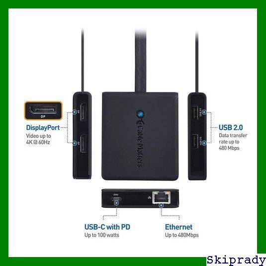 Cable Matters USB C ハブ USB Type C ハブ USB C ドッキングステーション USB C DisplayPort 4KデュアルDisplayPort USB 2.0 Ethernet 100W PD充電 Thunderbolt 4 / USB4 / Thunderbolt 3 Port対応 Windows & Linux用 ブラック 423