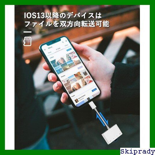 ※ご注意: IOS 9.2〜12.5のデバイスはUSBメモリから写真などを直接読み込まなく、「DCMI」ファルタを作成する必要があります。iOS9.2-12.4の場合(単方向転送、接続すると写真アプリは自動的に開く)iOS13以降の場合(双方向転送、写真/ファイルアプリは手動的に開く)電流500mAh以上のデバイスは対応できません。USBポートとSD・MicroSDカードポートは同時使用できません。WIFI SDカードは対応できません。 ※認識できない場合は、以下の操作してみてお願いします。 ケースの厚さによって、端子が奥まで入れない可能性があります。ケースを外してからもう一度ご挿入ください。SDカードが認識されない場合は、SDカードのフォーマットをご確認ください。(NTFS、FAT32のみ対応可能。)充電しながらUSBデバイスを使用してみてください。USBポートが使用できない場合は、USBメモリー又はマウスでごテストしてみてください。他のデバイスを接続して、接続不良があるかご確認ください。 【プラグ&プレイ】 使用簡単、PCやアプリ不要、IOS13以降は挿せば直ぐに使用可能。(※ご注意:IOS 9.2〜12.5のデバイスはUSBメモリから写真などを直接読み込まなく、「DCMI」ファルタを作成する必要があります。) 【改良チップ】 改良されたチップを採用し、500mAhまでのデバイスすを対応可能、優れた互換性があります。効率的なデータ伝送と安定した信号を提供できます。 転送速度:14M/s〜16M/s。 【純銅芯ケーブル】 高品質な純銅芯多層構造ケーブル、断線しやすいコネクタ部分にも強化加工を施し、より良い耐久性と安定性を実現しました。 もっと読む 【双方向転送可能】 JPEG、RAW、MP4、H.264の形式のファイルをサポート可能、IOS13以降はExcel、Word、PPT、PDF等様々なファイルをサポートしています。 IOS 13以降:双方向転送可能 IOS 9.2〜12.5:外部メモリからiPhoneに転送可能。 【様々なデバイスを対応】 対応:USBメモリー、カメラ、マウス、キーボード、マイク、楽器等様々なUSBデバイスを対応。 非対応:ハードディスク、プリンター、レコーダなど電流500mAh以上のデバイスは対応できません。 【幅広い互換性】 IOSシステム13以降のiPhone/iPadをサポートしています。iPhone 13/13proも対応可能。 もっと読む