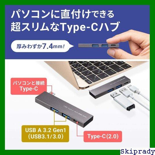 サンワサプライ USB Type-C 3ポートハブ USB A 3.2 Gen1×2ポート/USB Type-C×1ポート バスパワー スリムタイプ アルミボディ USB-3TCH22S 129