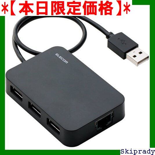 エレコム 有線LANアダプター USB-A USB2.0 USBハブ3ポート付 ブラック EDC-FUA2H-B 306
