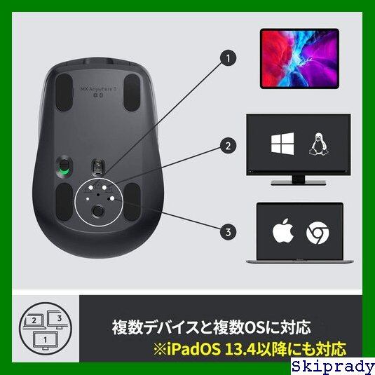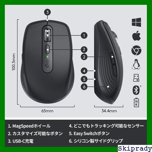 ロジクール MX ANYWHERE 3 ワイヤレス モバイルマウス MX1700GR Unifying Bluetooth 高速スクロールホイール 充電式 ワイヤレスマウス 無線 マウス windows mac chrome iPad OS MX1700 グラファイト 国内 4