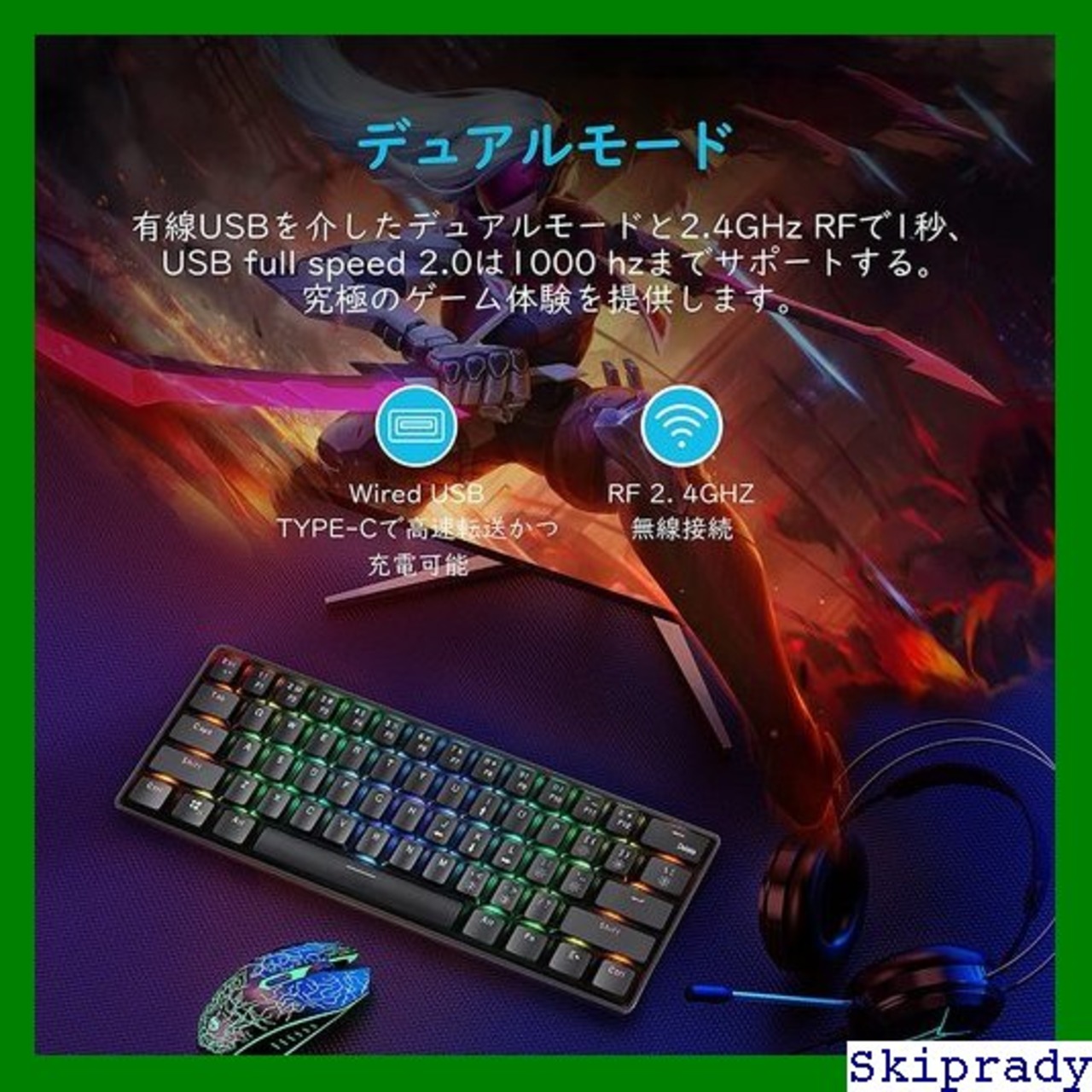 メカニカルキーボード機械式ゲーミングキーボードワイヤレス 2.4GHz/USB有線 両対応 充電式 コンパクトゲーミングキーボード青軸61キー防衝突 RGB発光LEDバックライト付き英語配列 日本語取扱説明書… 93