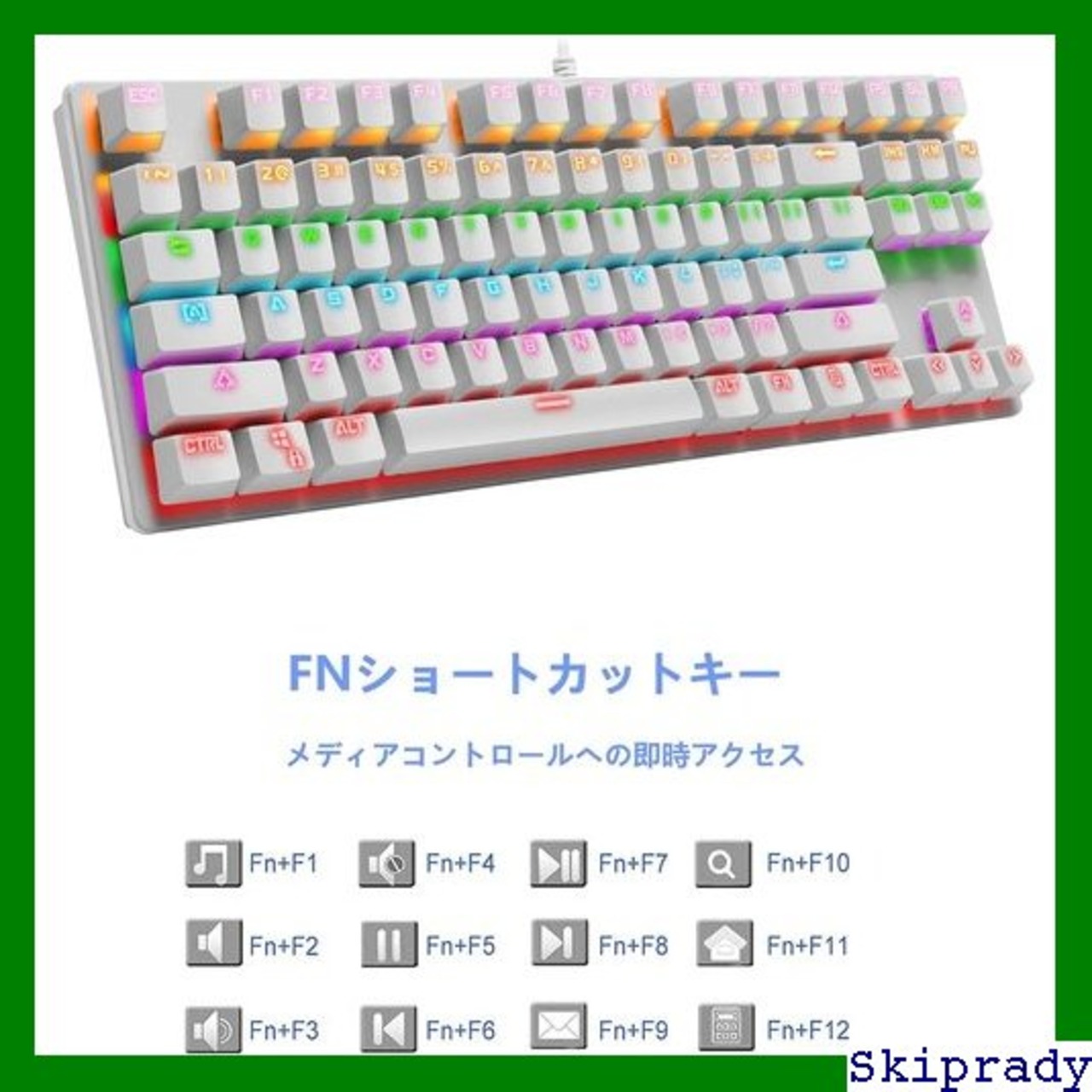 【87キーのメカニカルゲーミングキーボード】製品は抗衝突技術を採用されて、全87キーが独立スイッチ付き、複数のキーを同時に押せでも衝突しません。メカニカルゲーミングキーボードが12個のマルチメディアボタンや滑りにくいマットを装備します。金メッキのUSBコネクタを備えた高速USBケーブルが安定性高い接続を実現し、高速ハードコアゲームも対応できます。階段ようなデザインなので、スタンドを設計され、高度を調節でき、有効に疲労が減少しています。
