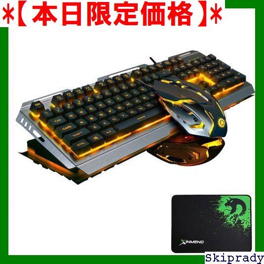 【本日限定価格】 FELiCONRV1 ブラック&シルバー&オレンジ マウスパッド付 有線 アンチゴースト バックライト 英語配列 104キー セット マウス ゲーミングキーボード 205 | Skiprady MENS