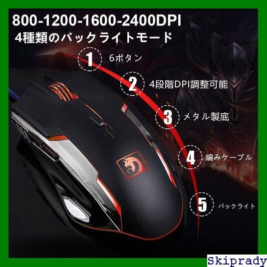 【6ボタンマウス】高精度コントロール、800/1200/1600/2400の順で4段階のDPI速度に切り替えできます。お好きな速度に手軽に変更できます。デフォルトは1200です。