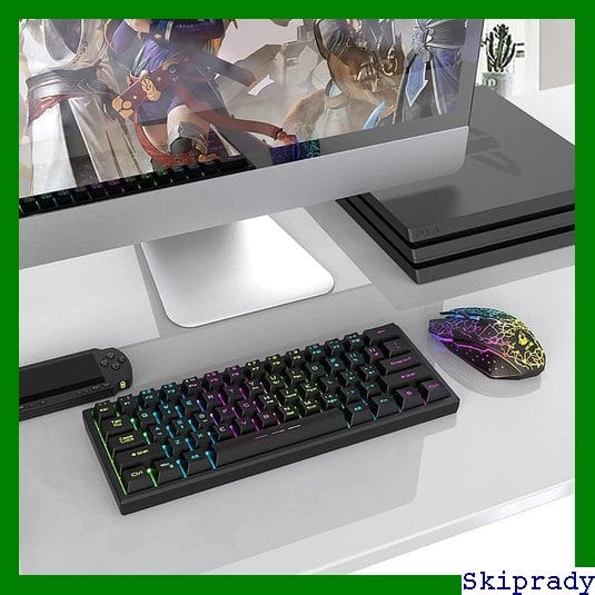 【本日限定価格】 ゲーミングキーボード ブラック 日本語説明書付き OS対応 Windows/Mac 全キー防衝突 静音マウス 2.4GHz 防水 充電式 4000mAh大容量 US配列 バックライト 61キー テンキーレス セット ゲーミングキーボードマウス ワイヤレス 無線 308 | Skiprady MENS