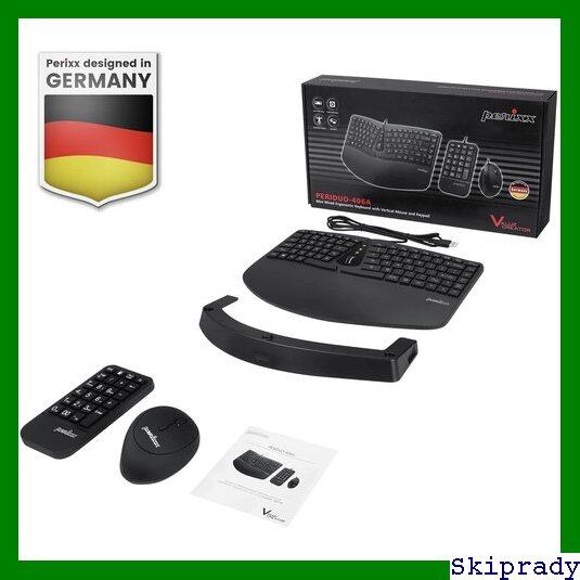 ペリックス PERIDUO-406A キーボード・マウス・テンキーセット エルゴノミクス仕様 有線 垂直型マウス 調節可能パームレスト メンブレン ロープロファイル 英語配列 409