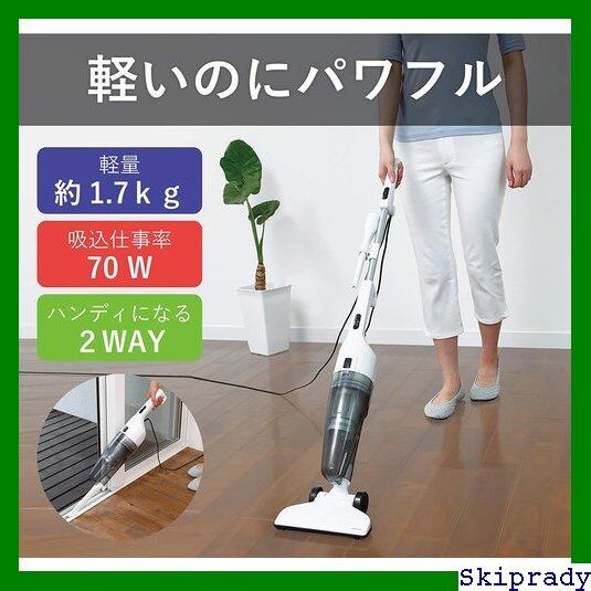 付属品:すき間ノズル、すき間ノズルホルダー、ハンドル、床用吸込口スイッチ・表示:スライド式(ON/OFF) 2箇所(本体スイッチ・ハンドルスイッチ)、集じん方式:サイクロン式、集塵容量:0.6L、吸込仕事率:70W、床用吸込口:ノーマル(ブラシなし)