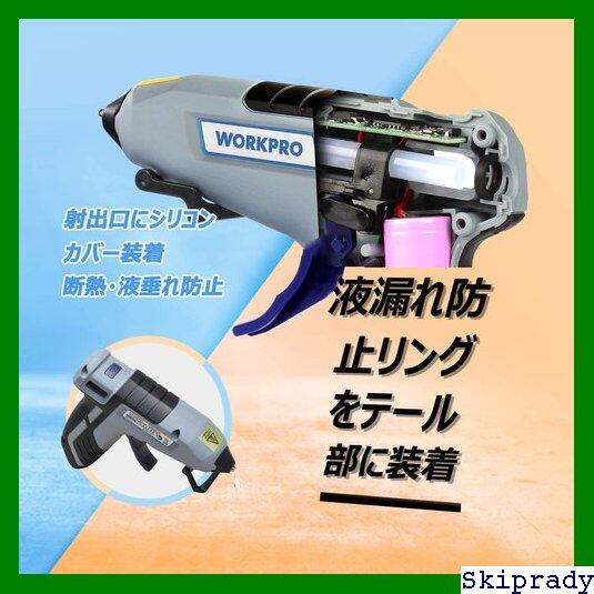 WORKPRO グルーガン コードレス スティック20本付き 100s予熱 USB充電式 急速加熱 液漏れ やけど防止 小型 強力粘着 DIY 補修 接合 手芸 木工 粘着工具 13