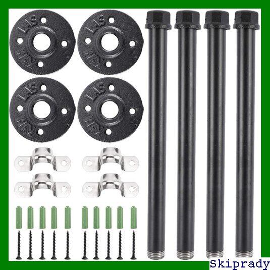 8MILELAKE 4本組 棚受け ブラケット アイアンパイプ 金属 パイプ ブラックキャスト アンティーク ネジ入り パイプシェルフブラケット 25cm 51