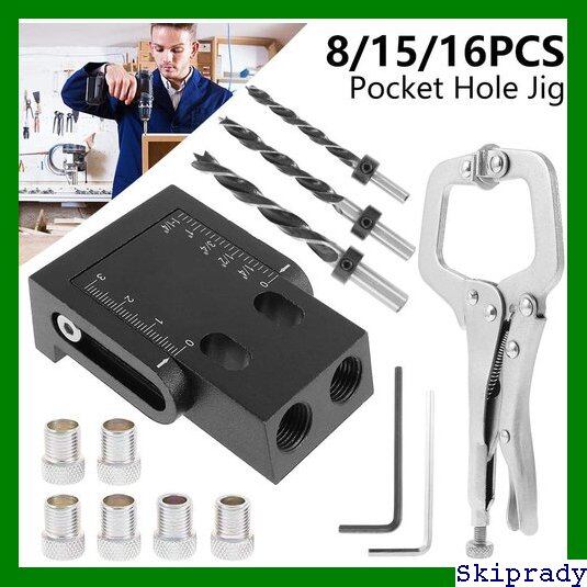 【本日限定価格】 Littlegrass_木工ポケットホールジグ 16点セット ダボ治具 DIY工具 位置決めガイド 穴あけツール 木工用ツール 木製作業 調整可能 穴あけ 斜め口穴あけガイド ドリルガイド 15度斜め 89 | Skiprady MENS