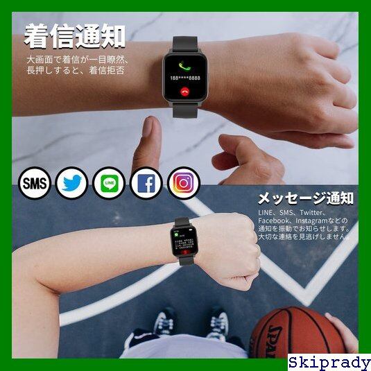 【本日限定価格】 スマートウォッチ iPhone/Android対応 日本語説明書付き 日本語アプリ メンズ レディース ギフト プレゼント 誕生日 スマホ探し着信通知/SMS/Twitter/Line//アプリ通知 ストップウォッチ スマートブレスレット 座りすぎ通知 目覚まし時計 懐中電灯 タイマー 音楽制御 制御 GPS運動記録 カラースクリーン 天気予報 明度調整 腕上げ点灯 カスタムダイヤル モード 1 最新版Bluetooth5.2& 23 | Skiprady MENS