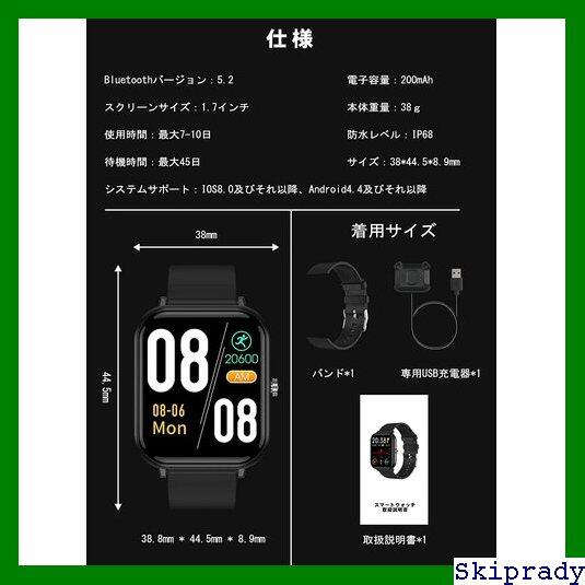 【本日限定価格】 スマートウォッチ 日本語説明書付き 人気 着信通知/拒否 座りすぎ通知 4段輝度調整 SMS/Twitter/Line/の通知 ストップウォッチ iPhone/Android対応 天気予報 watch smart 音楽再生コントロール 目覚まし時計 スマートブレスレット 遠隔撮影 レディース メンズ 24種類運動モード 45日待機時間 スポーツウォッチ IP68防水 Bluetooth5.2 活動 1.7インチHD大画面 腕時計 36 | Skiprady MENS