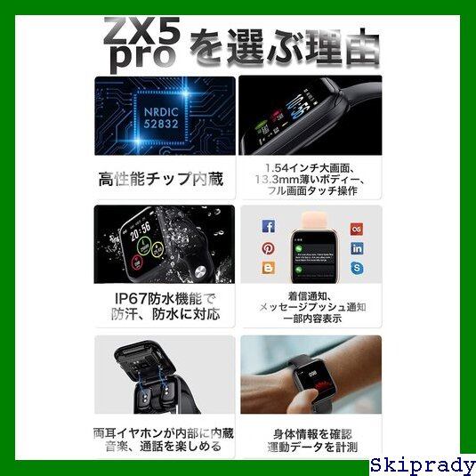 スマートウォッチ 両耳イヤホン IP67防水 SIRI 活動 1.54インチ 歩数計 iphone Android 通話 日本語表示 LINE 人気 自動 感圧タッチ 音楽コントロール リモート 日本語取扱説明書・花鳥6ヵ月 ブラック 103