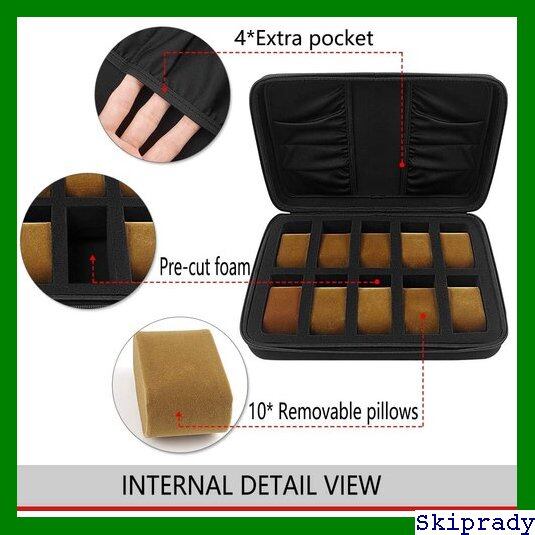 パーソナライズされたデザイン: 箱には10個のスロットがあり、それぞれの時計は別々に集めることができます。 10 個の取り外し可能なベルベットクッションがあなたの時計を保護し、あなたのコレクションに便利を提供します。 また、時計ベルトやその他の貴重品を収納できる 4 つのポケットが付いています。