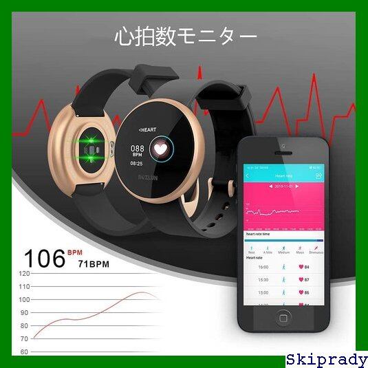 時計が同期したアプリは、iOS 8.0以降およびAndroid 4.4以降のオペレーティングシステムとBluetooth 4.0をサポートしています。 ブラック、ゴールド2色が用意されています。 5.7インチから7.9インチまでの手首サイズは男性に適合。 直径1.56インチ、厚さ0.33インチの本体サイズ。 充電式リチウムポリマーバッテリー、5V 1A USB充電器 B36Mスマートウオッチ 【対応機種と品質】Android/iOS 、Bluetooth4.0対応 。の付けと終身のサポート支援をご提供いたします。万が一商品が不具合の場合ございましたら、お気軽にご連絡ください。パッケージ内容:スマートブレスレットの本体x1、充電ケーブルx1、日本語取扱説明書x1。ご不明な点がございましたら、お気軽にメールでお問い合わせください。 1.04インチカラースクリーン:B36Mスマートウォッチには、明るい光ではっきりと見えるIPSカラータッチスクリーンがあります。 防水:B36MスマートウォッチはIP68防水で、シャワーや水泳中に着用可能。 耐久性と軽量設計:航空宇宙グレードのアルミニウム、滑らかなフラッシュケース、31gの超軽量を備えたB36Mスマートウォッチは快適で耐久性があります。 4日間のバッテリー:数日間のバッテリー寿命により、昼夜を問わず洞察とインスピレーションが得られます。 用途やその他の要因により異なります。 もっと読む 通知 着信通知、Line通知、通知、 Twitter通知、Instagram通知などのメッセージ通知はアプリの設定で、バイブレーションで注意させます。通知が来る時、差出人及び内容の詳細が表示されます。また、にすぐに出られない際、タッチすれば簡単に拒否できます。 トレーニング管理 各種なデータを参考することで、より合理的なトレーニング計画を作成します。自動モードの場合、30分毎に測定でき、自分の身体状況に合わせたペースで最適なトレーニングの調整をすることができます。 高防水防塵 IPに続く最初の数字が防塵等級を表し、最後の数字が防水性能を表します。数字の数が大きいほど効果が高いです。本製品はIP688高防塵防水のデザインで、日常生活の手洗いや洗顔の際も取り外す必要ありません。汗、雨、水しぶきに対応しています。 ※お風呂、サウナ、温泉水や温泉の湯気は故障の原因となります。 もっと読む 運動モード 24時間で歩数を精確に記録できます。運動モードで、歩行距離・消費カロリー・心拍などを記録でき、アプリで各データグラフ化して、可視化にします。タイマーとカウントダウン機能も運動に役に立ちます。 【睡眠モニター】 夜に眠る時、自動的に睡眠の質をモニターします。夜何時間深い睡眠と浅い睡眠をして、目覚まし回数などを直観的に表現して、よく眠れたかいなかをはっきり分かります。 【遠隔カメラ】 スマートブレスレットをつけたまま、タッチすれば撮影することができます。遠距離の撮影は友達と写真を撮る時、スマホのシャッターを押しにくい場合にすごく便利です。 もっと読む