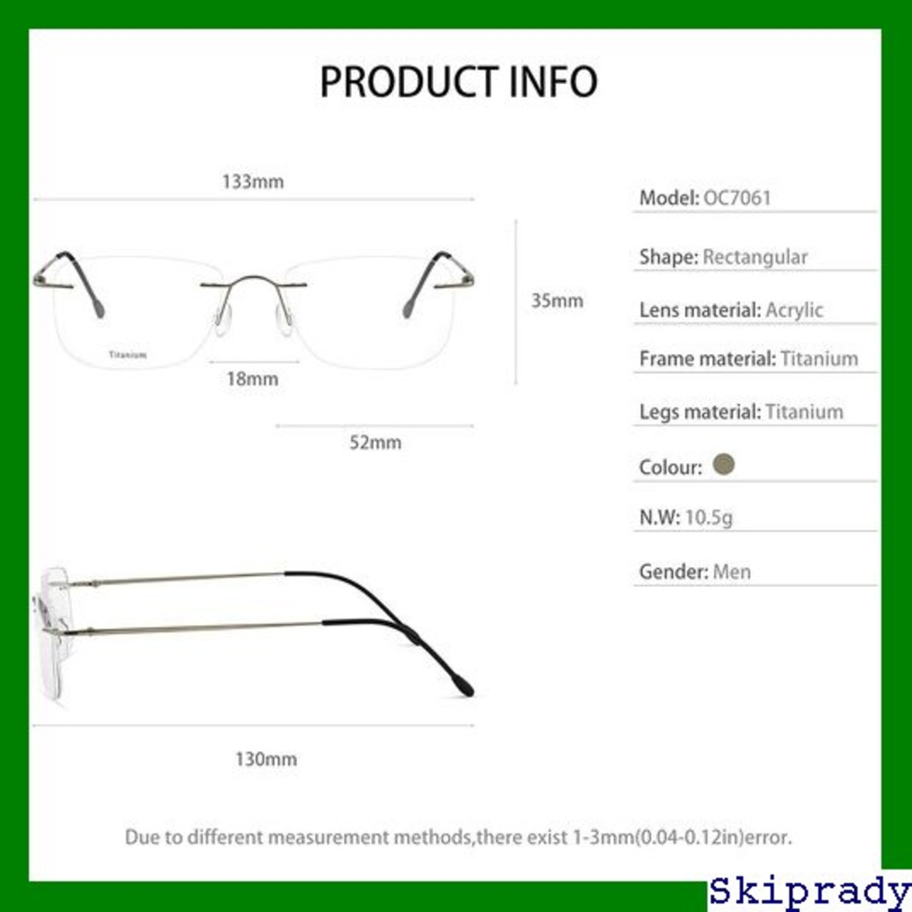 【SPEC】レンズ幅:52mm レンズ高さ:35mm ブリッジ:18mm テンプル:130mm フロント幅:133mm ※多少の誤差はご容赦ください。 フチなしのチタン眼鏡は縁が存在しませんので、掛け心地が軽くてビジョンが広いです。