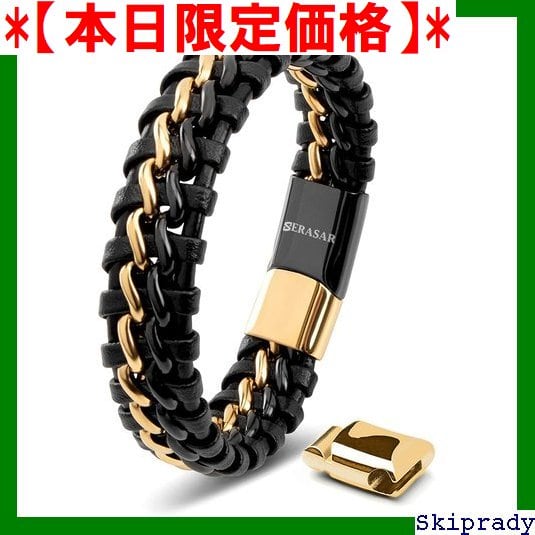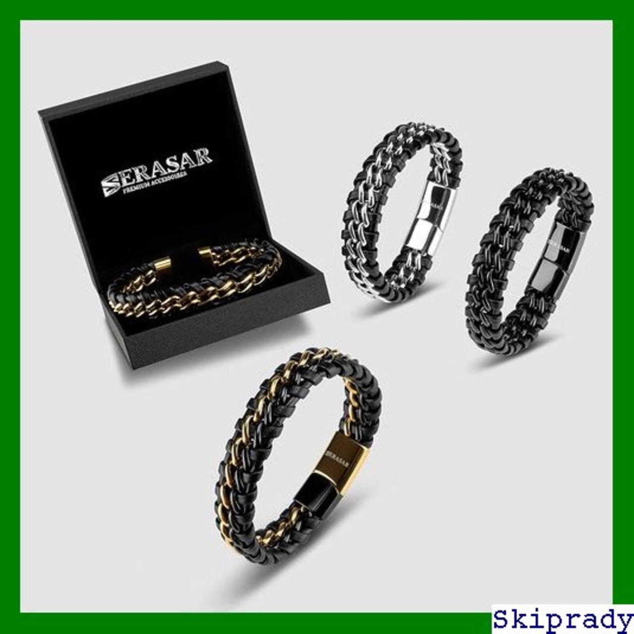 【本日限定価格】 SERASAR 素晴らしい 専用ジュエリーボックス| ブラック、シルバー、ゴールドマグネットステンレススチールクラスプ| | メンズブラックプレミアム本革ブレスレットSteel | 5 | Skiprady MENS