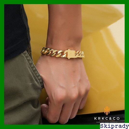 【本日限定価格】 KRKC&CO ギフト ラッパー ヒップホップ ストリート B系 ダンサー 腕輪 メンズ 4面カット ブレスレット キヘイ k18金メッキ キューバンチェーン サージカルステンレス 12/14mm メンズブレス 喜平ブレスレット 6 | Skiprady MENS