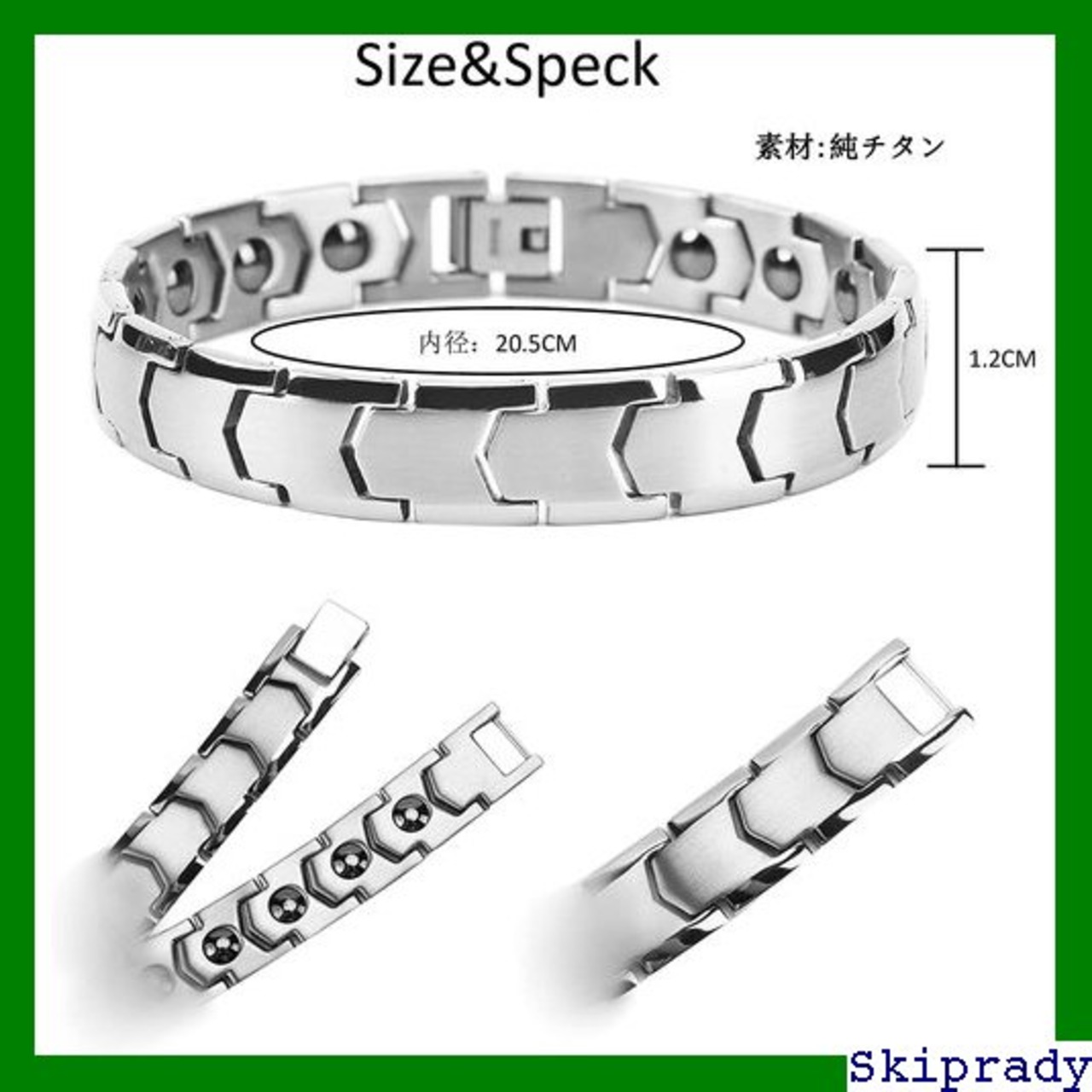 【チタンブレスレット】ブレスレットはチタン製で、水や汗に強く、アレルギーにしにくく、変色しにくいのである。また軽量、なので体への負担が少なくなります(チタンの重量は一般のステンレス製品の60%しか占めていません)