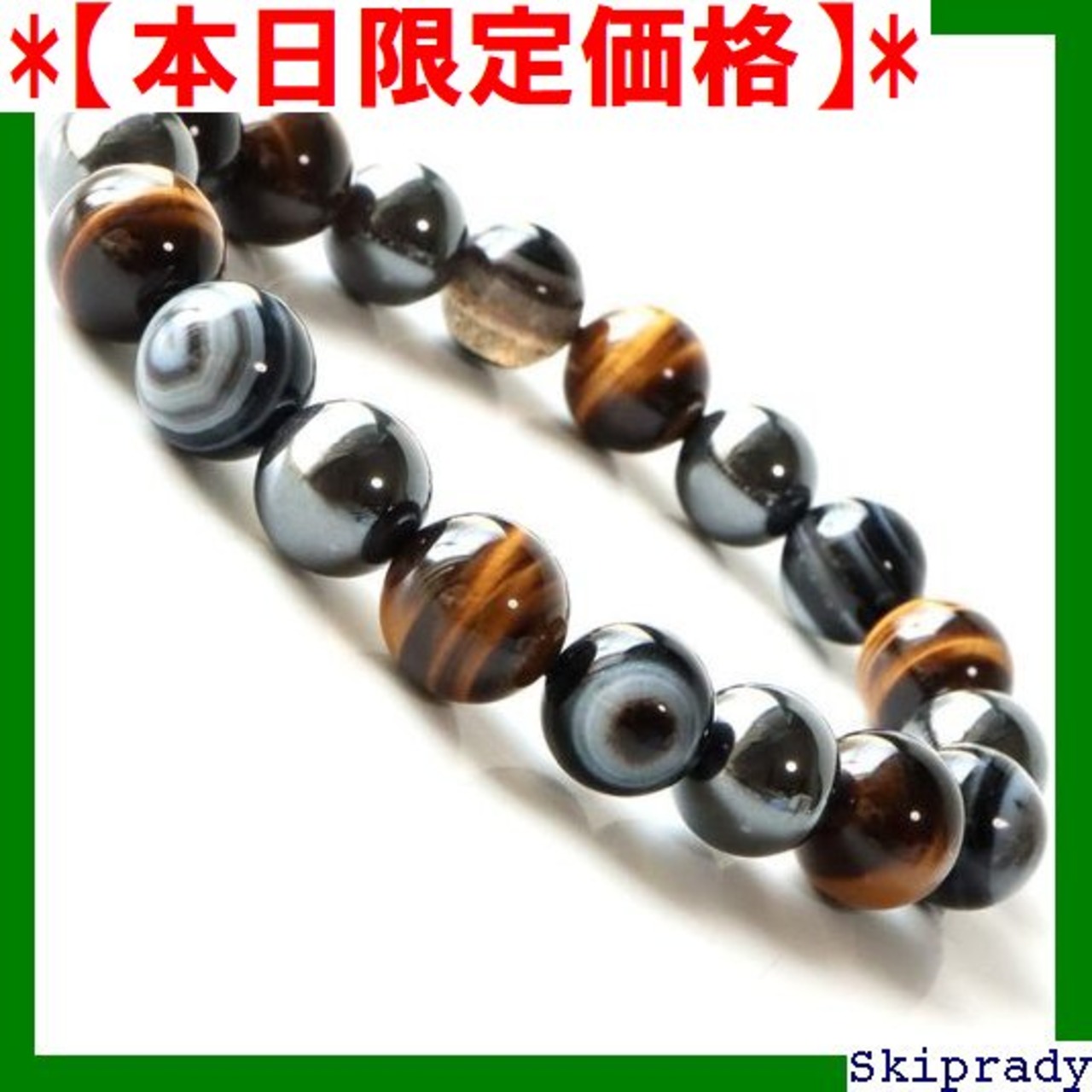天眼石 タイガーアイ ヘマタイト ブレスレット 12mm パワーストーン 天然石 数珠 メンズ アクセサリー 内周 約18.5cm 16