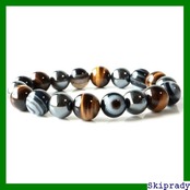 サイズ名:内周 約18.5cm ◆使用しているパワーストーンについて ・AAA 最高品質 タイガーアイを使用。 光の反射によって虎の眼のようなキャッツアイ効果がはっきりと分かります。・天眼石は、一般的に非常に強力な邪気払い、魔よけの石と言われています。 天眼石は瑪瑙の一種で、まるで「眼」のように見える年輪の様な模様を持ちます。・『勝利へ導く石』と云われるヘマタイトは、積極的に行動することを助け困難を乗り越えて目標達成へと導いてくれるとされます。◆サイズ AAA タイガーアイ 12mm 天眼石 12mm (±0.5mm) ヘマタイト12mm (±0.5mm) 内周 約18.5cm