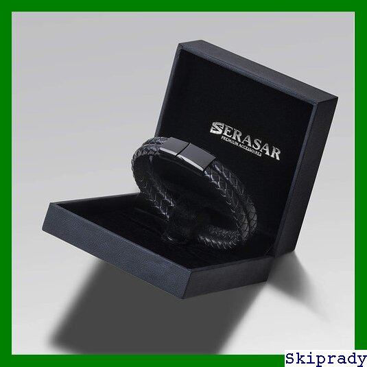 【本日限定価格】 SERASAR 素晴らしい 専用ジュエリーボックス| ブラック、シルバー、ゴールドマグネットステンレススチールクラスプ| | メンズブラックプレミアム本革ブレスレットDouble | 124 | Skiprady MENS