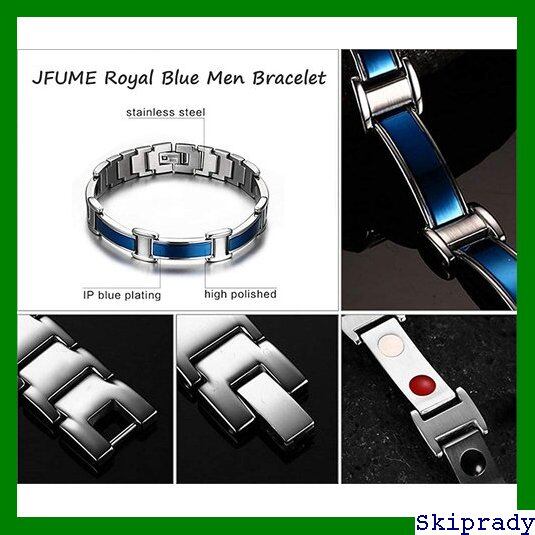 JFUME ブレスレット ゲルマニウム メンズ 磁気 腕輪 ステンレス製 ブルー 21CM 132
