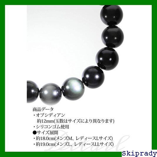 【本日限定価格】 新宿銀の蔵 シンプル パワーストーン 数珠 腕輪 天然石 黒曜石 サイズ レディースLL メンズL 長さ約19cm ブレスレット オブシディアン 12mm玉 149 | Skiprady MENS