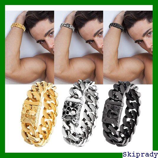 【本日限定価格】 JEWELRYWE 彼氏プレゼント アクセサリー ファッション ゴシック ロックバッグ シルバー サージカルステンレス 幅広 チェーン 腕輪 パングル ドクロ 髑髏 スカル ブレスレット メンズ 172 | Skiprady MENS
