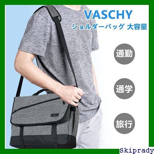 VASCHY ショルダーバッグ メンズ 大容量 メッセンジャーバッグ 15.6-17インチPC収納 15つの収納ポケット 斜めがけバッグ 軽量 撥水加工 A4 カバン 通勤 通学 旅行 手提げバック 荷物ベルト付き 24