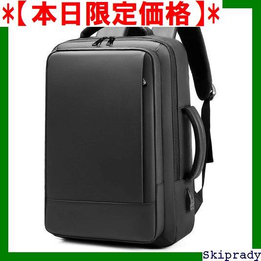 【本日限定価格】 リュックサック 機内持ち込み可能 面接 就活 修学旅行 通学 通勤 旅行 出張 海外 20L〜35L 多機能 USB充電ポート A4 黒3way ブラック PC対応 16インチ 撥水加工 薄型 拡張 軽量 大容量 メンズ バックパック ビジネスリュック 53 | Skiprady MENS