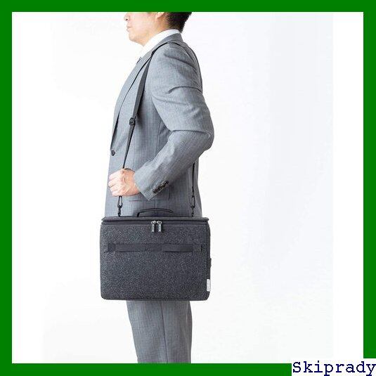 オフィス、サテライトオフィス向けに便利なボックス型バッグ。●パソコンや書類などを入れて移動に便利です。●しっかりした芯材入りの自立型で床置きも可能です。●付属のオーガナイザーを外側にも取り付け可能です。●ショルダーベルト付きです。●底は汚れを拭きやすいPU素材です。■カラー:ブラック 内装/ベージュ ■サイズ:外寸/W355×D142×H265mm メインルーム内寸/W335×D120×H250mm ■重量:854g(ショルダーベルト含まず) ■材質:表装/フェルト(ポリエステル) 底/PU ■付属品:オーガナイザー×1、仕切板×1、ショルダーベルト×1■対応機種:13.3インチまでのノートパソコン