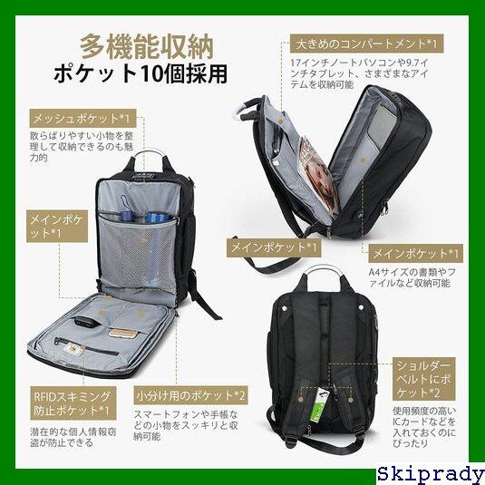 【本日限定価格】 RFIDスキミング防止&ローク搭載 男女兼用 ・通学に最適 旅行 通勤・出張・ 通勤リュック 耐衝撃 盗難防止 メッシュポケット USB充電ポート 手提げ・リュック2WAY仕様 A4書類収納可 17インチPC 大容量 リュックサック バックパック 撥水加工 ビジネスリュック メンズ リュック 365 | Skiprady MENS