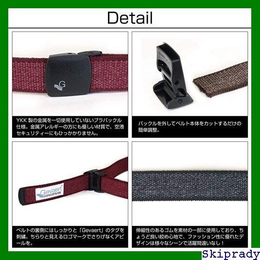 1899年創業のベルギーの老舗テキスタイルメーカー「GEVAERT BANDWEVERIJ(ゲバルト バンドウェーボン)」社製の生地を使用したベルトです。日本国内の工場でベルトに仕上げました。YKK製の金属を一切使用していないプラバックルなので、空港セキュリティーにひっかからず、さらに金属アレルギーの方にも優しい素材なので安心です。
